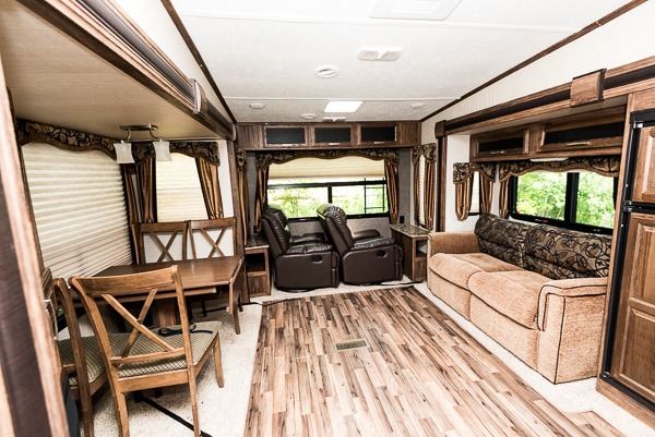 Three slide out are responsible for giving this Cougar X-Lite rear living fifth wheel its spacious feel. With dual opposing slides in the living area alone, it will feel a little like home when you first step in.
