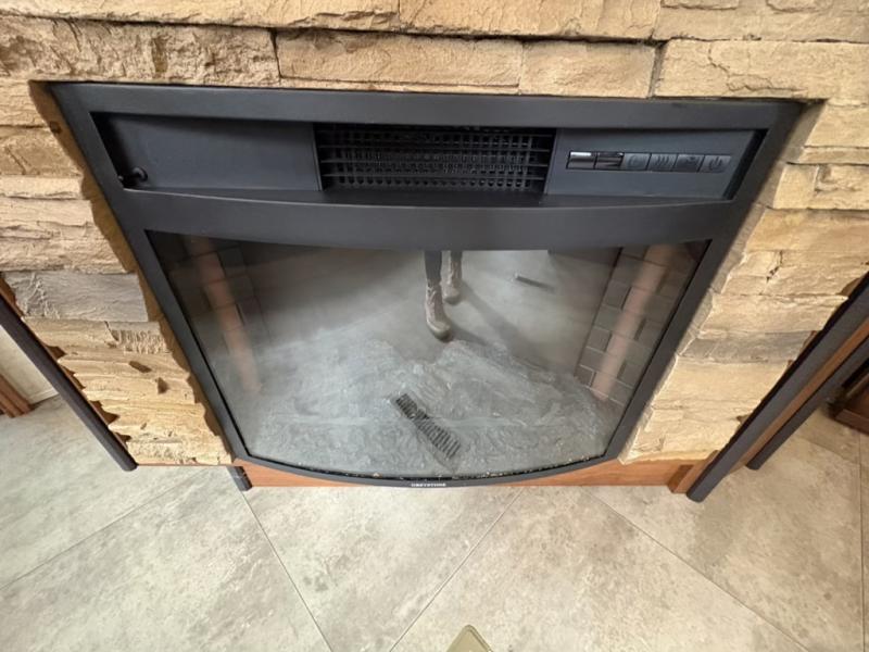 Through the door in the cargo or using the second entry door from outside you can enter the main living space with combined kitchen and living room including two slides. The first slide on your left as you enter from outside is a large sofa. There is a nearby entertainment center with 48" TV, and cozy electric fireplace below.