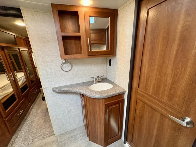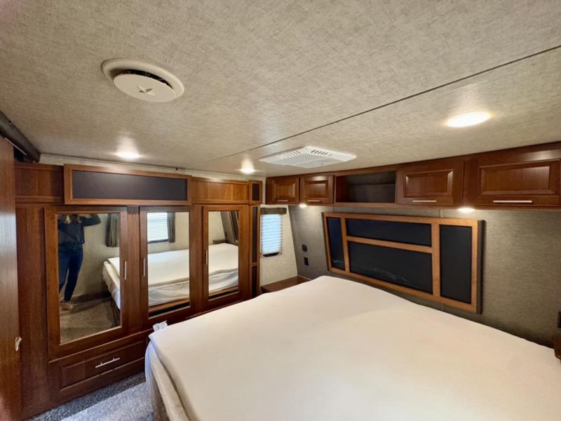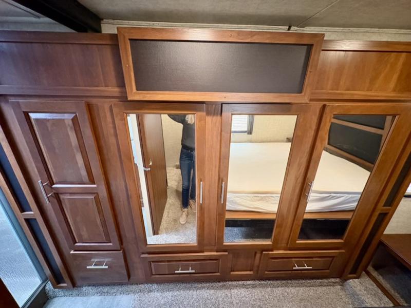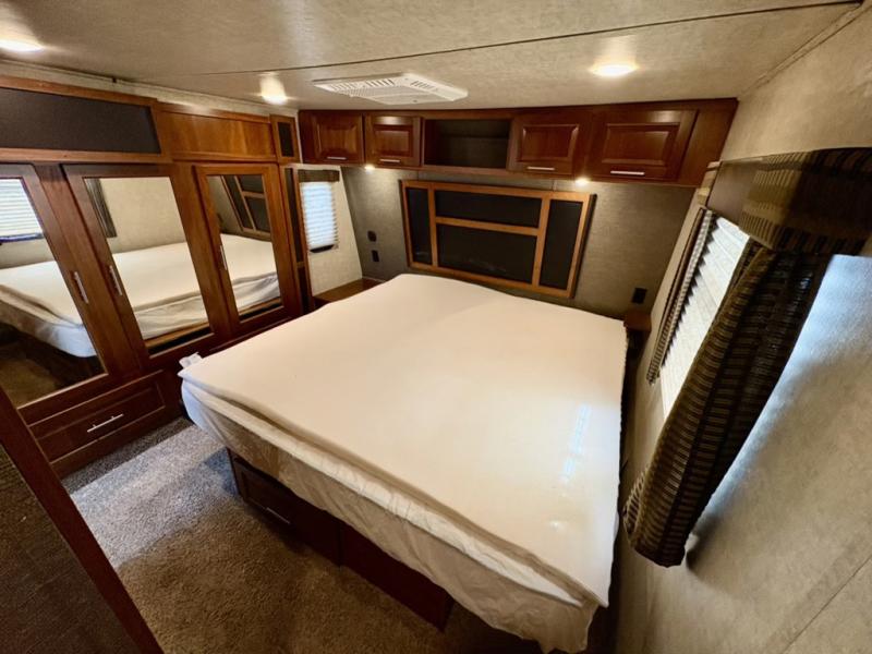 What I liked most: The doors, cabinets, and woodwork is all solid. No composite! We actually could easily live in this thing if we wanted. The appliances were USA made! I pull it with a 2015 f250 powerstroke diesel. Recommend 5000lbs airlift or firestone airbag suspension for like 800 bucks.