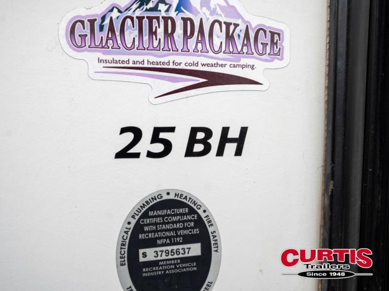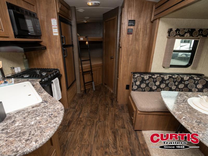 Camp comfortably with this Laredo LHT travel trailer by Keystone RV. Model 25BH offers double bed bunks, a single slide for added space, a rear living layout, and pull-out camp kitchen, plus more!
