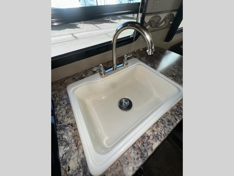 Before you step inside take notice of the convenient outside camp kitchen featuring a sink and two burner cook stove. Perfect for those times when you want to do a little cooking outdoors.
