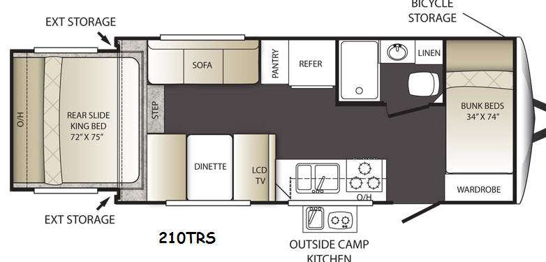 Enjoy this Outback Terrain bunkhouse travel trailer by Keystone featuring everything you need to enjoy your time away from home and more. Model 210TRS has an outdoor kitchen and a rear slide-out king bed!