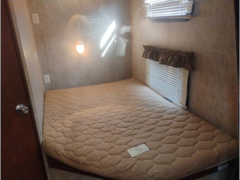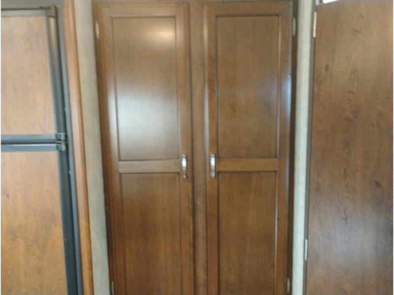 As you enter the most centrally located door you will see just how spacious this unit is. There is a front bedroom with queen size bed including wardrobes on either side for storage. There is also an overhead cabinet for added convenience. An entertainment center is located just off the foot of the bed and there are sliding doors on either side that can be closed providing more privacy in the bedroom at night.