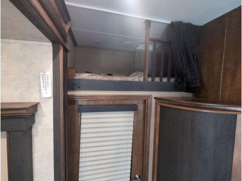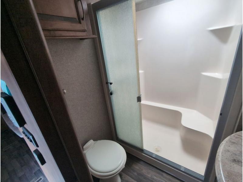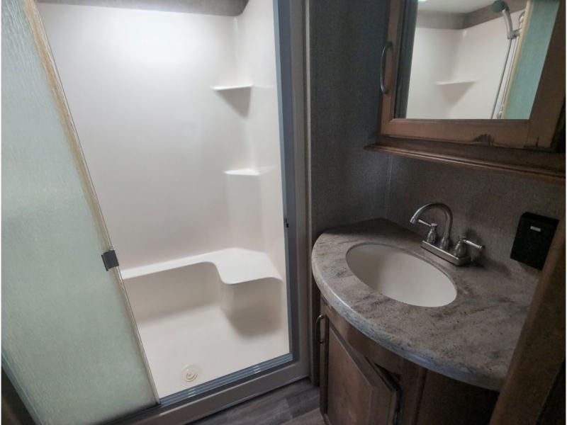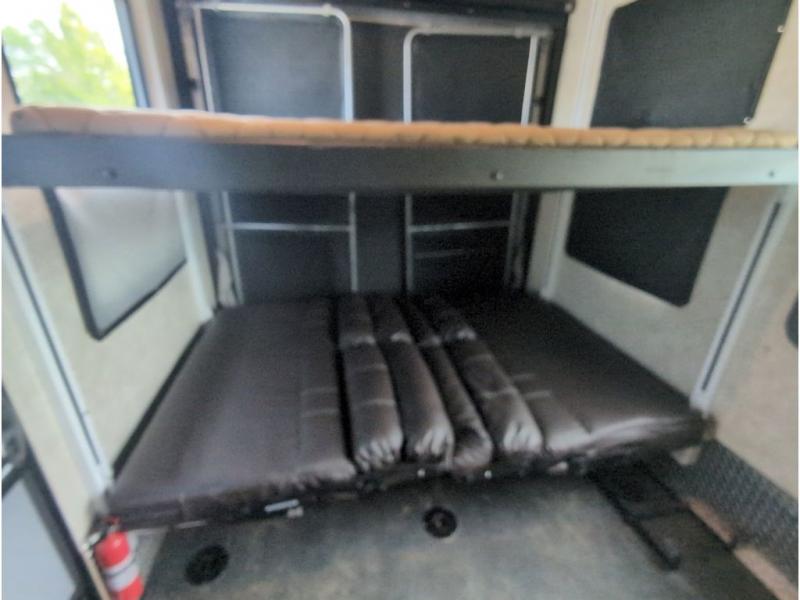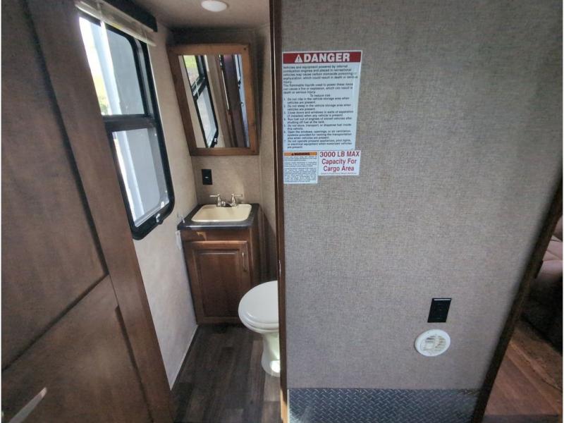 Loading and unloading is simple in this 11' garage space with a rear ramp door. There is plenty of space inside for all of your toys. When you reach your destination and the toys are removed there is extra living space with optional dual opposing sofas and an electric bed above. The twin loft overlooks the main living area and the kids will certainly enjoy. Also find a convenient half bath with toilet and sink in the cargo area so you don't have to track dirt and grim inside.