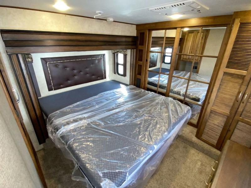 You will have no problem traveling with your favorite toys in this Keystone Raptor model 412TS. This fifth wheel toy hauler has everything you need for comfort on the inside, plus a 12' garage with 30 gallon fuel station to keep the toys going all weekend long.