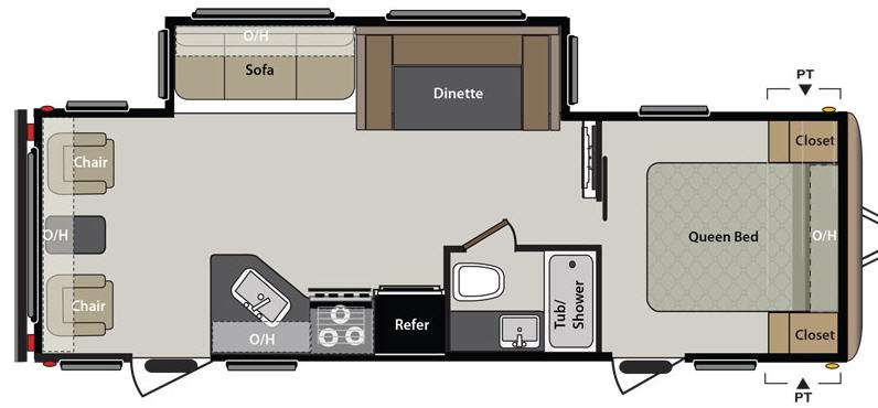 Camp comfortably in this Keystone Springdale travel trailer model 266RLWE featuring double entry doors, a rear living area layout, and a large slide for added interior space.