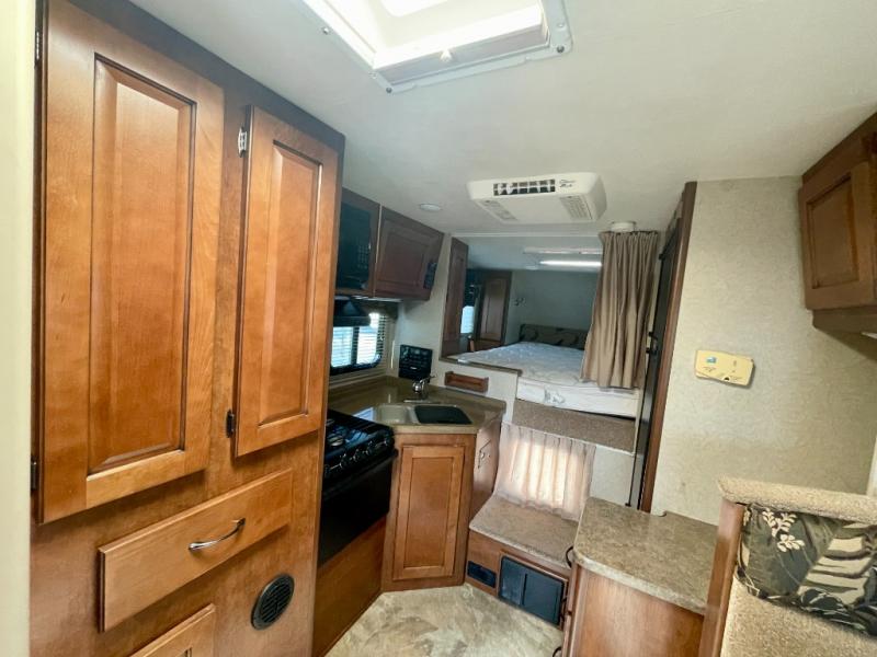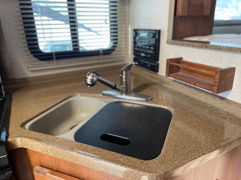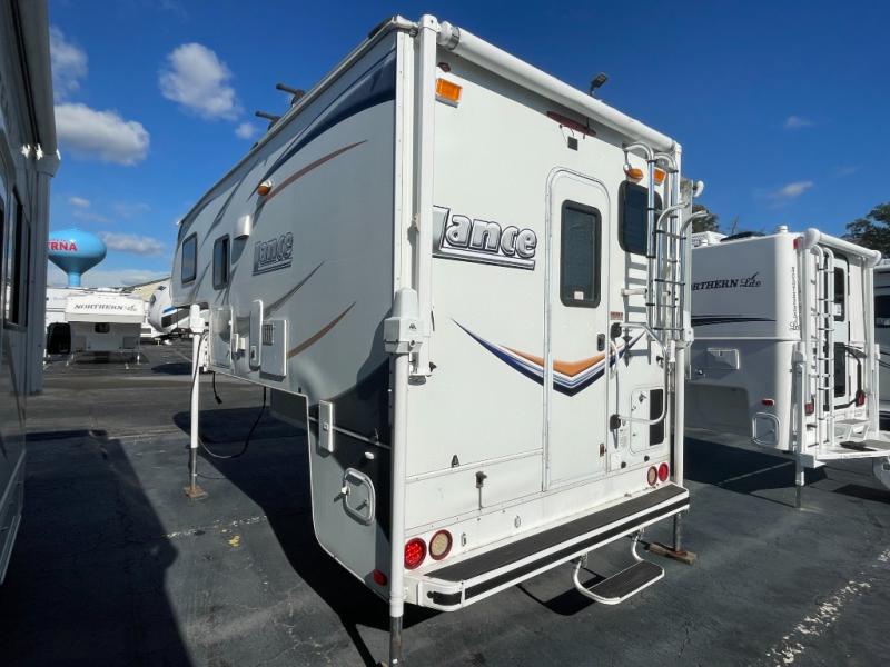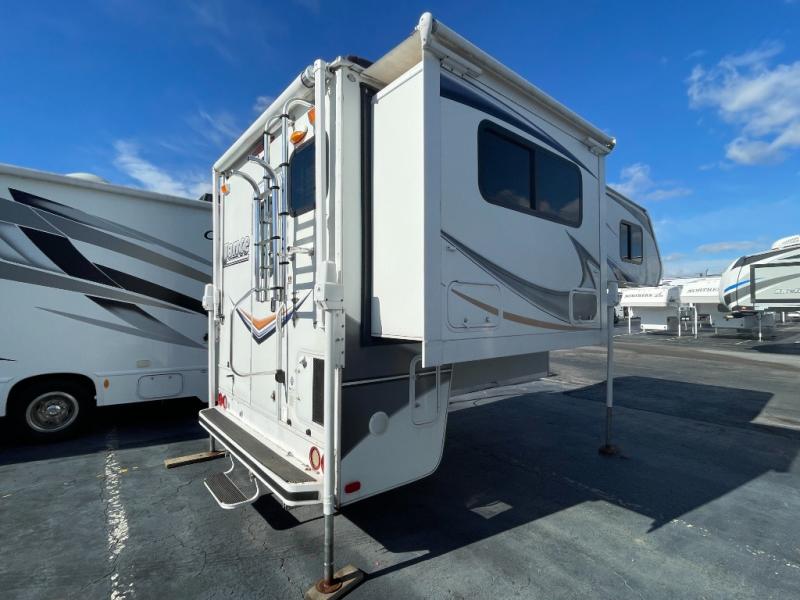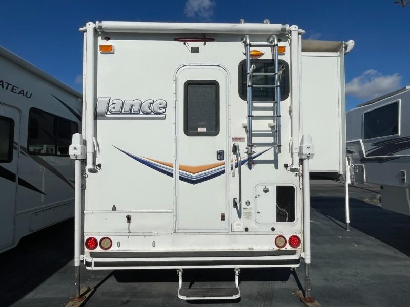 In this Lance truck camper model 1050S for long bed trucks you have a single slide and rear bath.