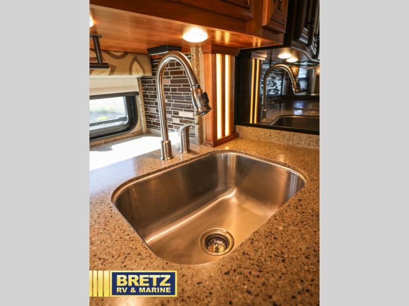 There are many overhead cabinets throughout the motor home. You can even choose an optional washer and dryer.