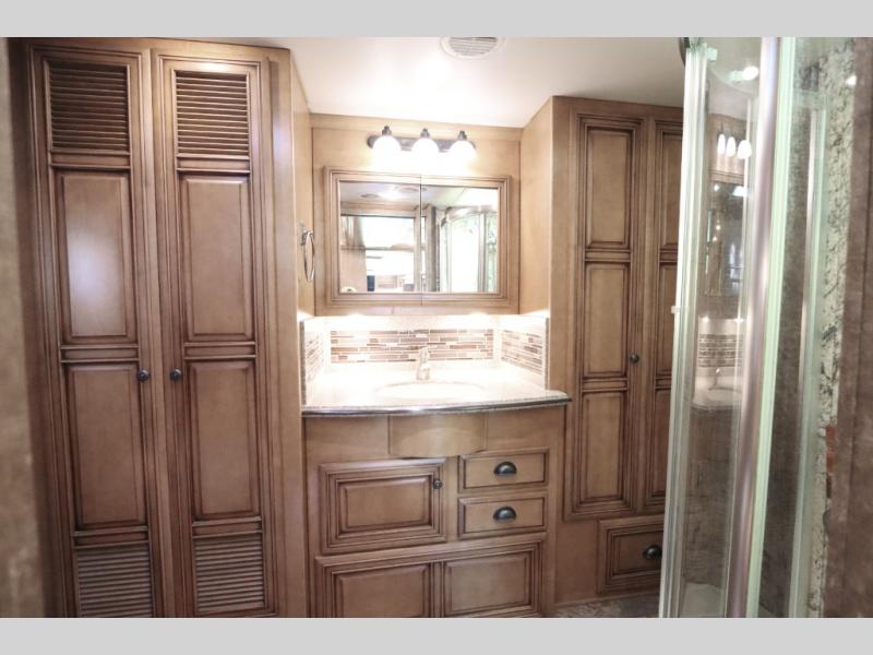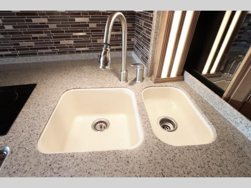There are many overhead cabinets throughout the motor home. You can even choose an optional washer and dryer.