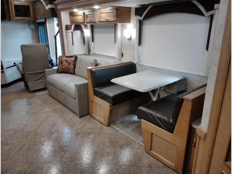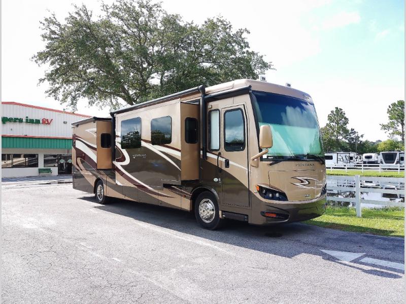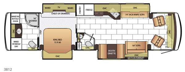 Stepping inside the Ventana LE 3812 motor home by Newmar you will find triple slides, and a bath and a half.
