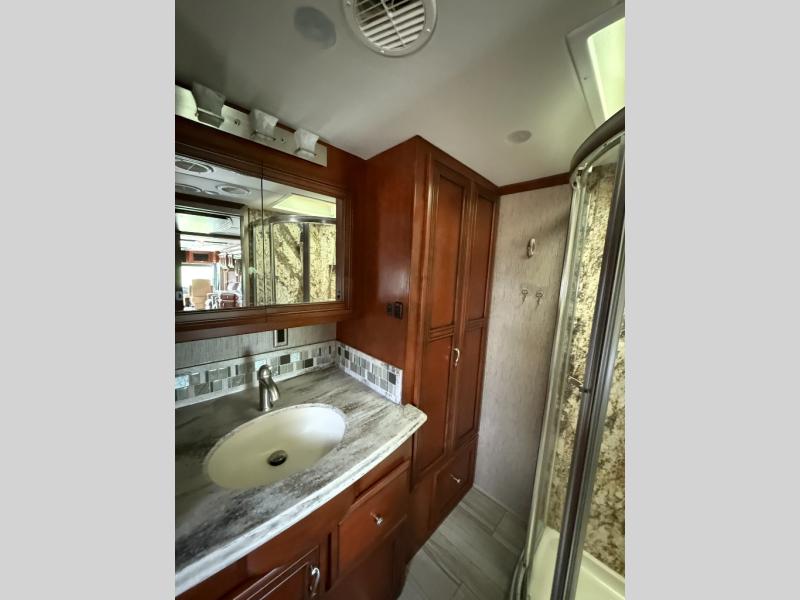The Ventana 4002 motor home by Newmar features a full wall slide and a bath and a half.