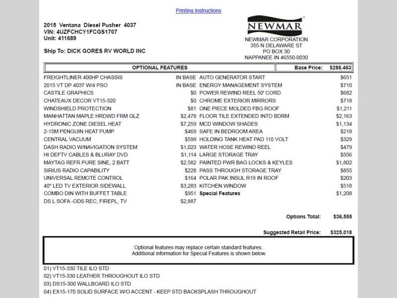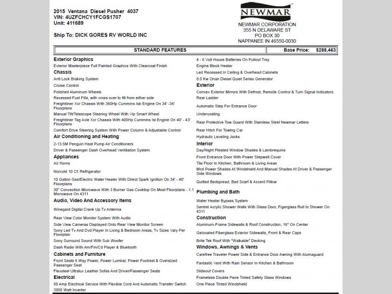 Used 2015 Newmar Ventana 4037 Freightliner 380hp Motor Home Class A - Diesel