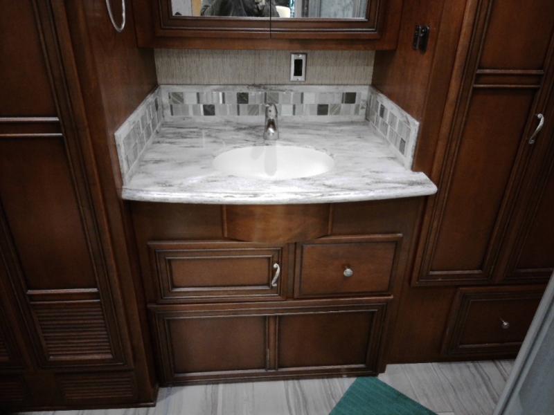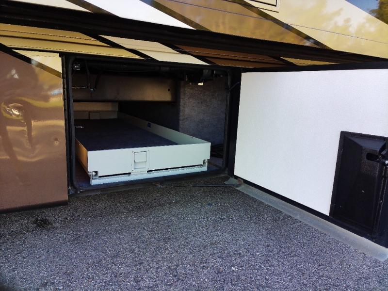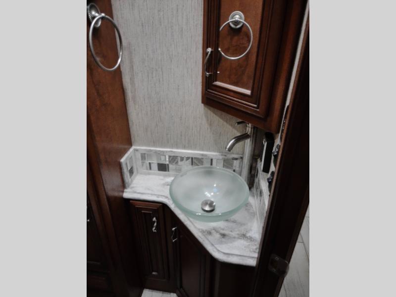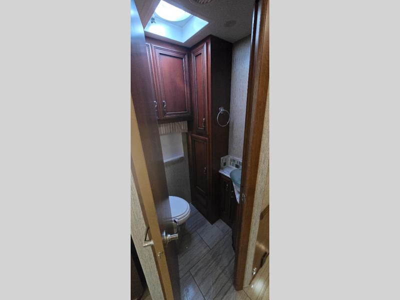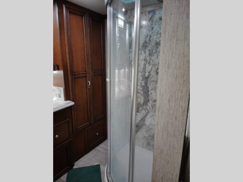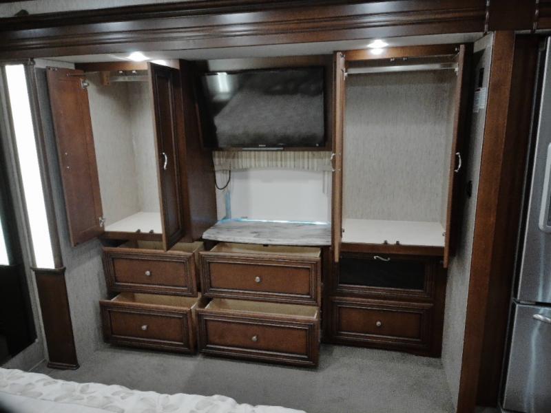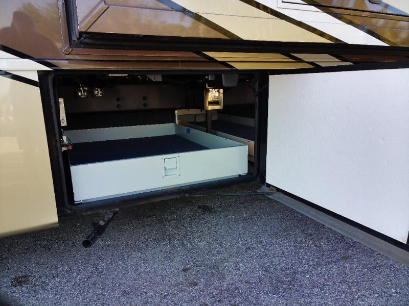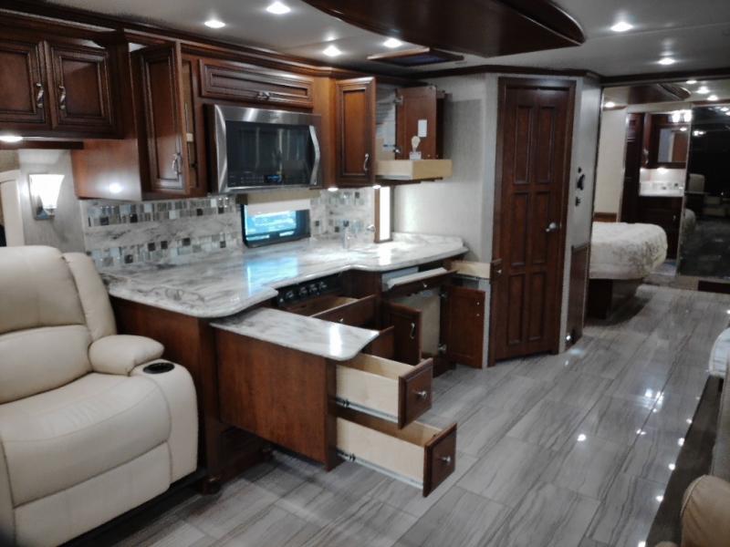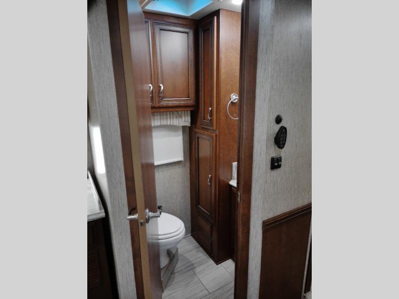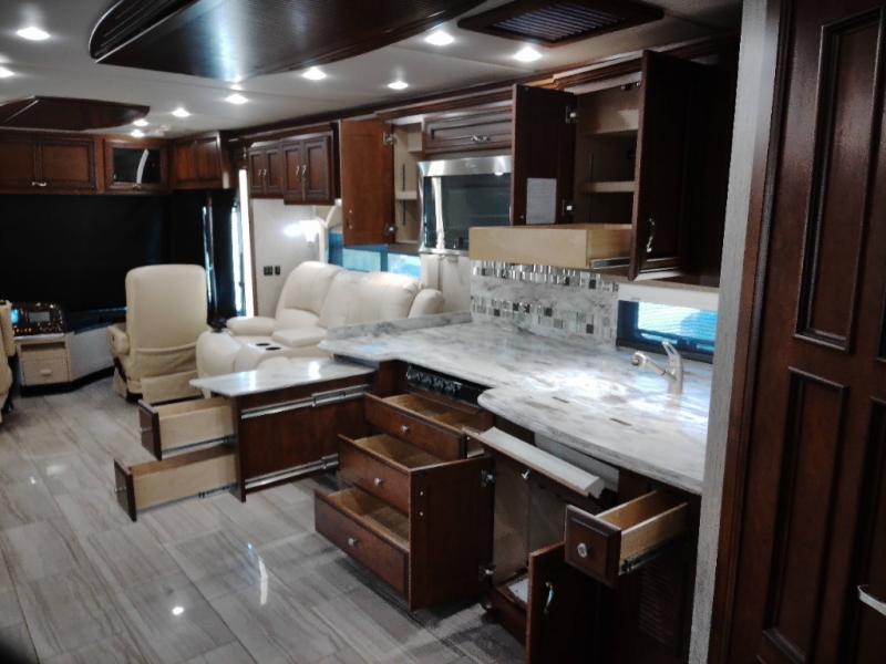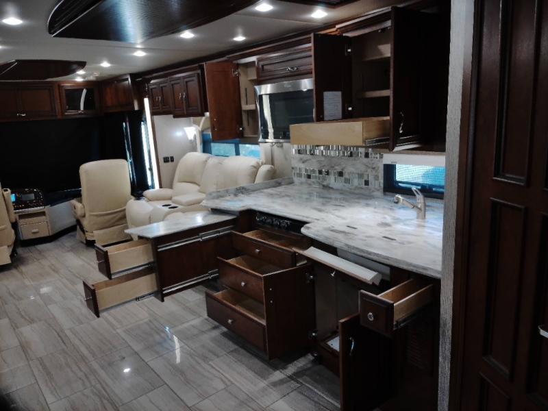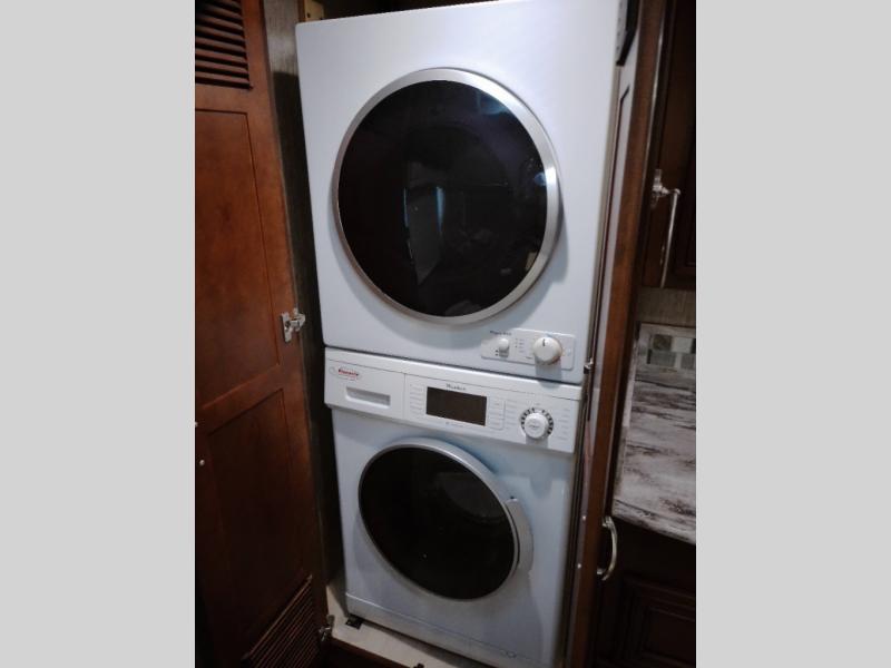 There are plenty of overhead cabinets throughout the motor home. You can even choose an optional washer and dryer.