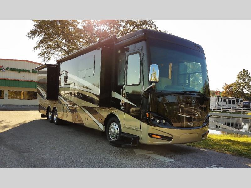 The Ventana 4037 motor home by Newmar offers triple slides and a bath and a half.