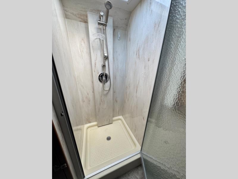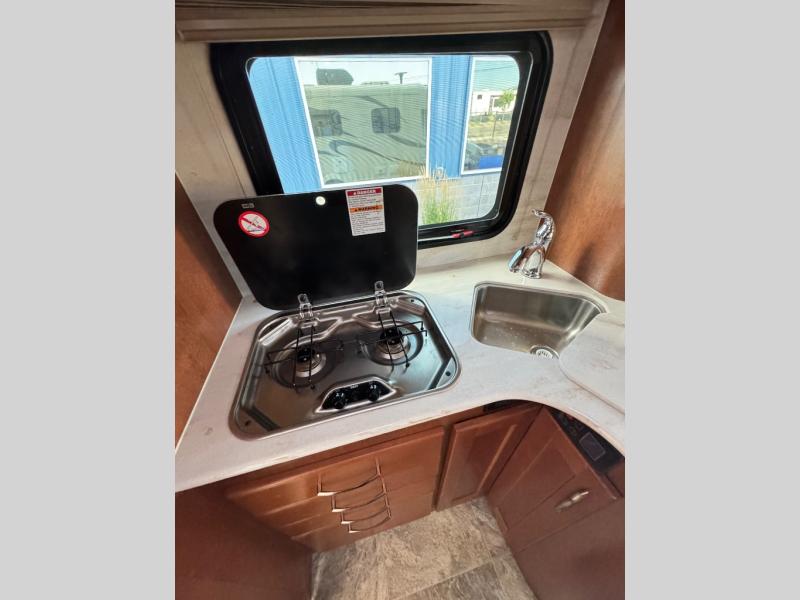 Plateau RB Motor Home, Driver and Passenger Seat Swivel, Table, Swing Out TV, Toilet, Shower, Furnace, Microwave, Refrigerator, Hanging Closet, Rear Bedroom with Permanent Rear Bed, Storage Below Bed, Swing Out TV, Slide Out Pantry, 2-Burner Range, Sink & Much More.