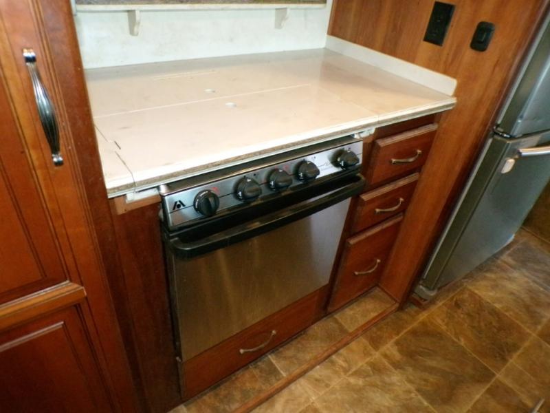 - A three-burner range, oven, and microwave for preparing anything from quick meals to gourmet dinners.