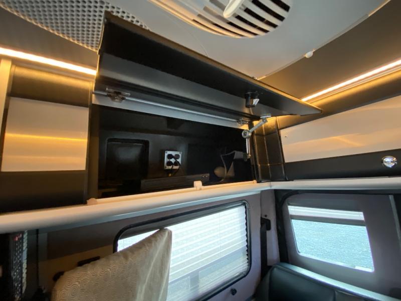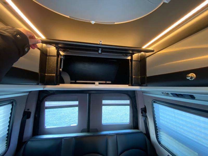 This makes the van very versatile: good for couples, small families, or friends — and easy to rearrange between driving, dining, lounging, and sleeping.The TS Adventurous by Roadtrek Class B coach features a rear dinette with table and additional bench seating. Both will convert to twin beds or a king bed.