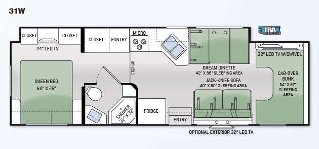 A convenient cab over bunk provides even more sleeping space that the kids will fight over, plus there is a 32" TV with swivel base above.