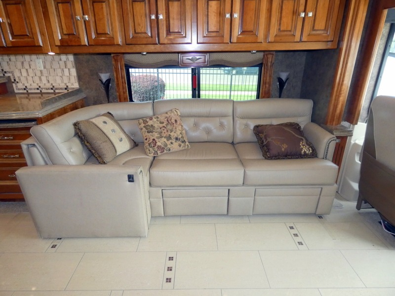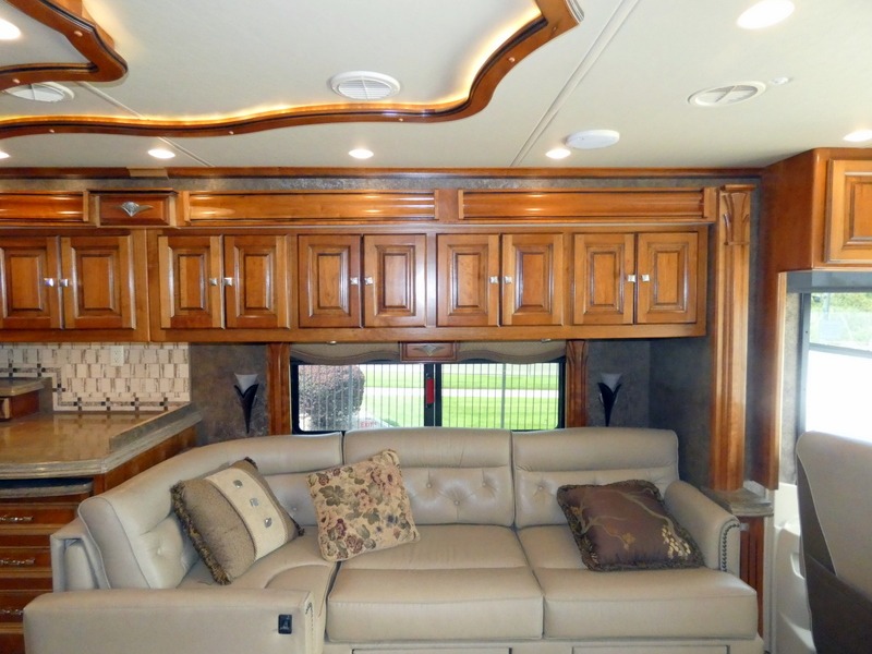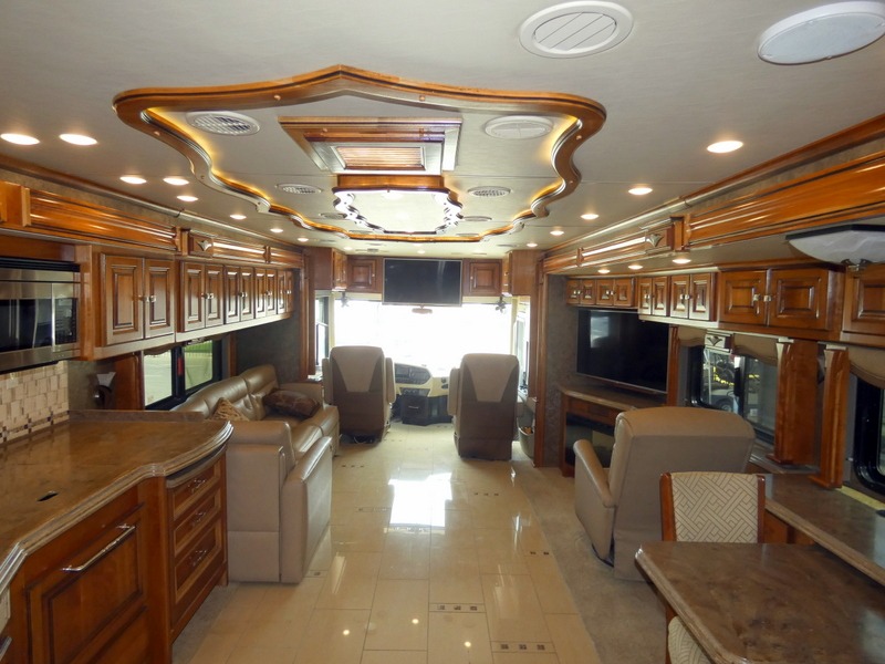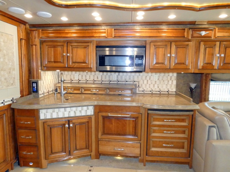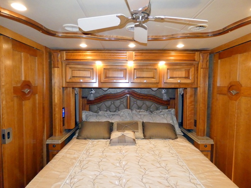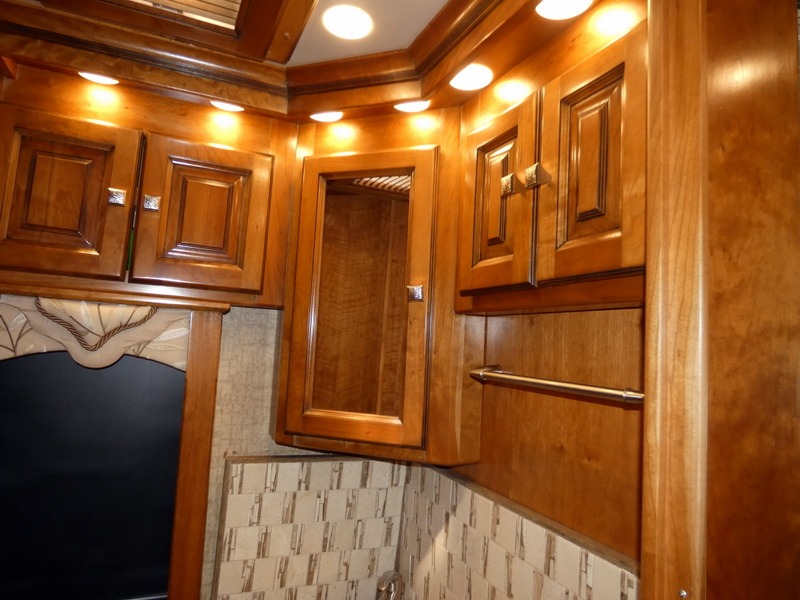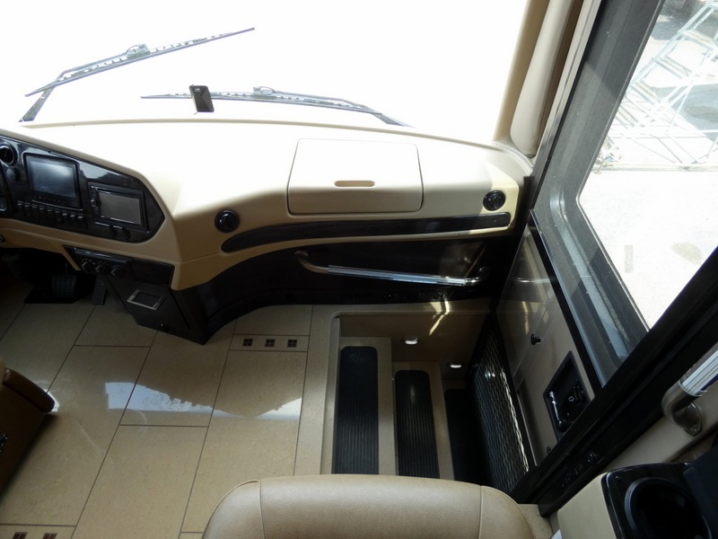 The outside is an art piece all in itself with its full body paint that will be turning heads as you drive down the road. Now, step inside and see the beauty on the inside of this luxury coach. Starting up front with the ultra leather driver and cab seats that are as lush as they look. The view is incredible both inside and out. You will find plenty of overhead storage cabinet all throughout so you don't have to leave anything behind.