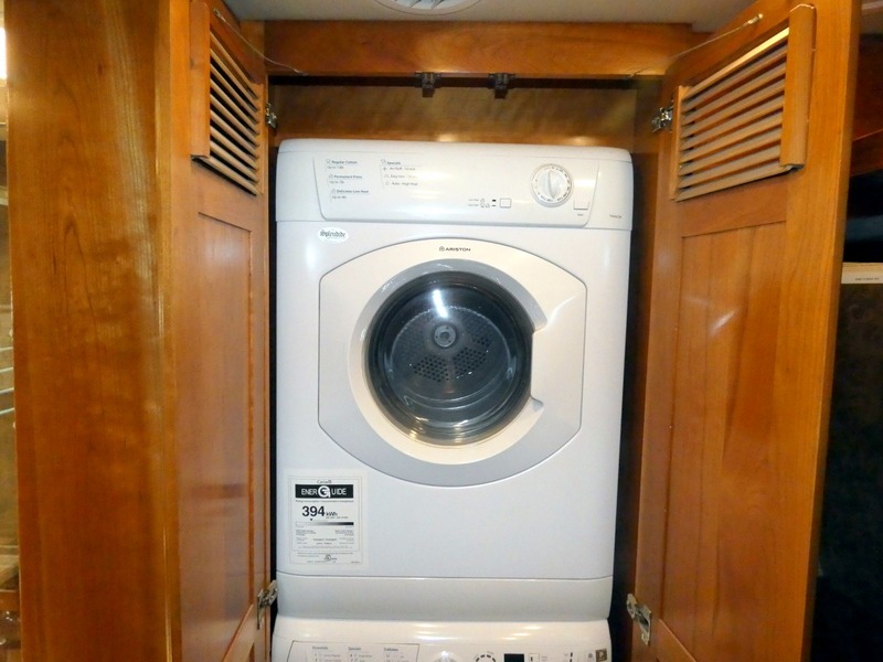 The master suite bath features an angled shower, overhead cabinet, toilet and double sinks. And just beyond the bath is a laundry room with storage cabinets and a washer and dryer. There is also a hanging rod for clothes.