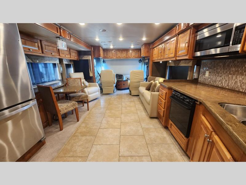 Quad slides, a spacious dinette, and 1-1/2 baths make this Allegro RED class A diesel coach by Tiffin unique!