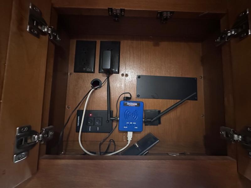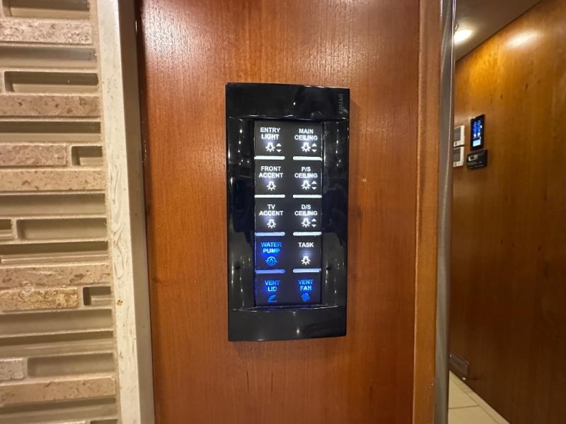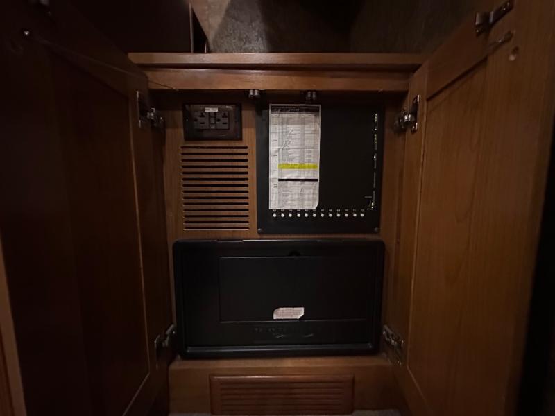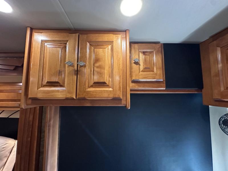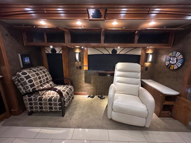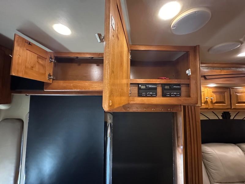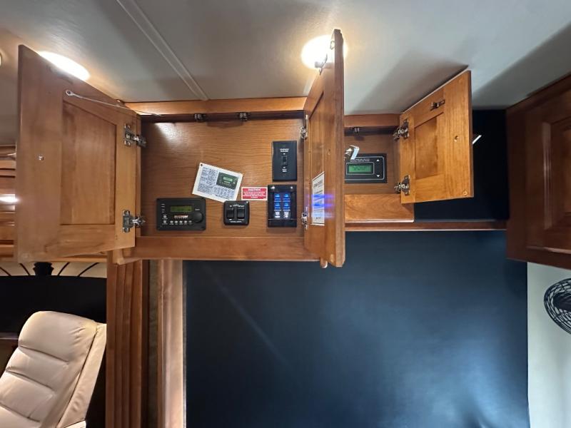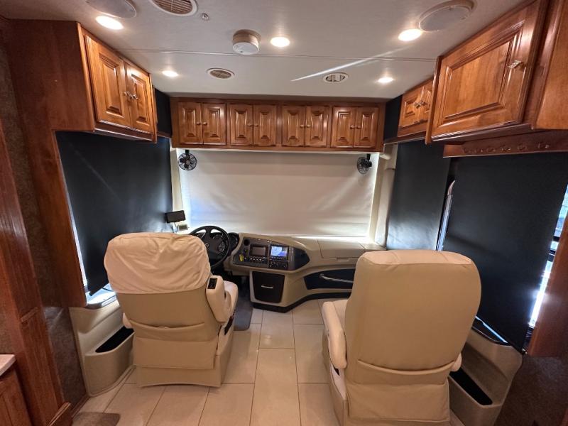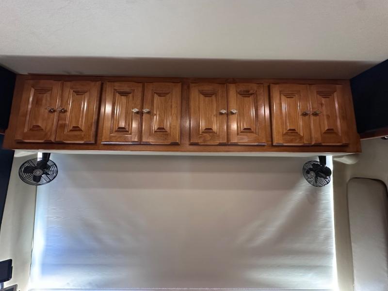 The front cab area has lots of overhead cabinets and room for an optional center mount TV.