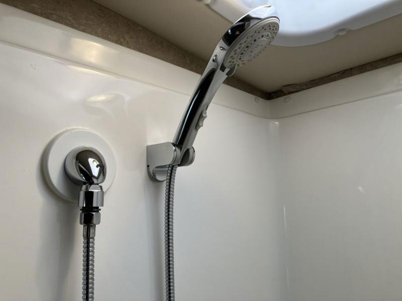 Enter model 38R just in front of the passenger seat which along with the driver seat can swivel around and become extra seating once you reach your destination for the night. You will enjoy overhead storage all the way around the cab area up front.
