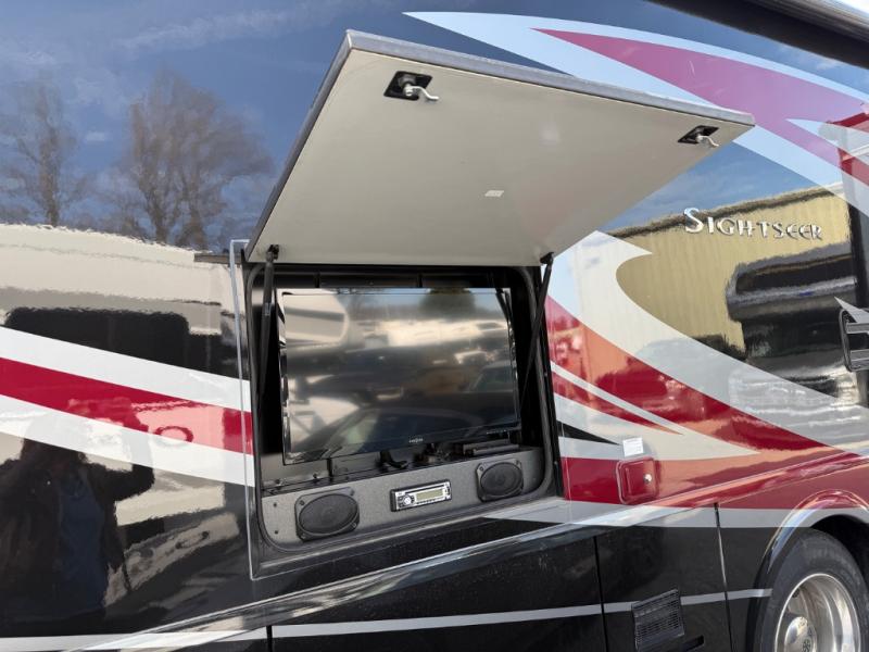 You will enjoy plenty of sightseeing as you travel in this Winnebago Sightseer class A motor home 35G. This unit features triple slides, an optional king size bed, and all the amenities you need to enjoy spending time away from home.