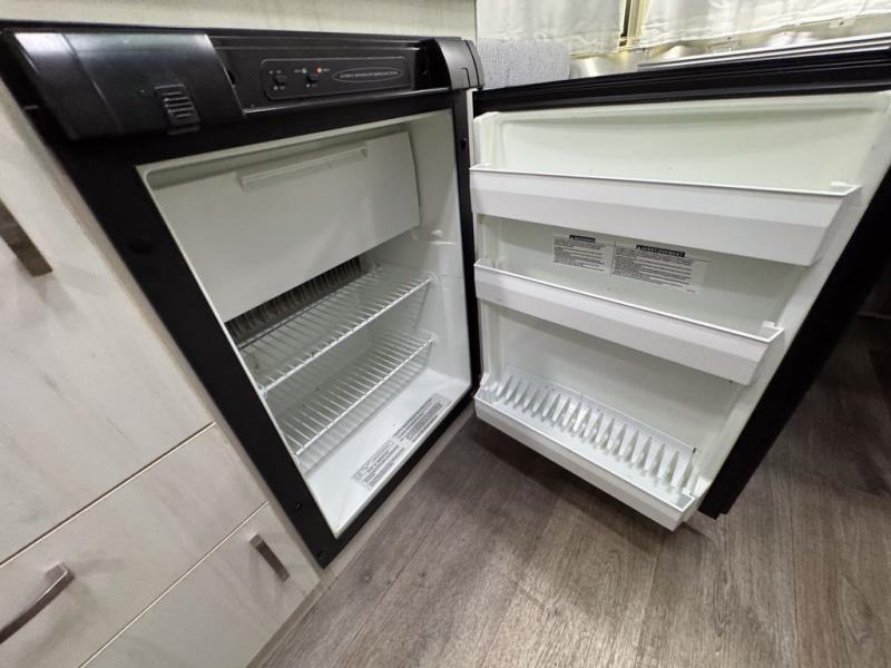 Let this Bambi travel trailer be your gateway to fun and adventure. After setting up camp, make lunch on the two burner cooktop or make something quick in the microwave oven before heading out to find a trail. The convenient wet bath will be waiting for you when you get back and you can use the showerhead pass through to create an outdoor shower. Get out the deck of cards in the evening to play at the dinette. This area also converts into additional sleeping space for a guest or the kids. You'll find plenty of storage for all your items, including a hanging closet, under-the-bed storage, and overhead space.
