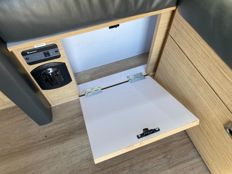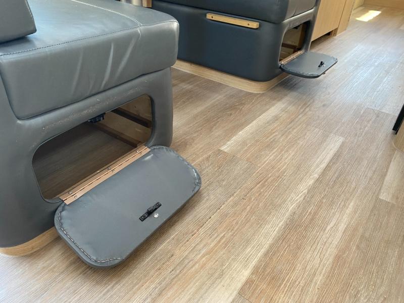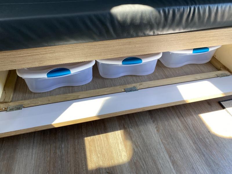 To the right of the entrance you will find a comfortable L-lounge/bed.
