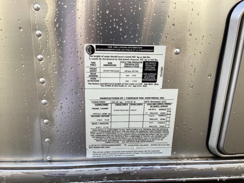 Used 2016 Airstream International Signature BAMBI M19 Travel Trailer