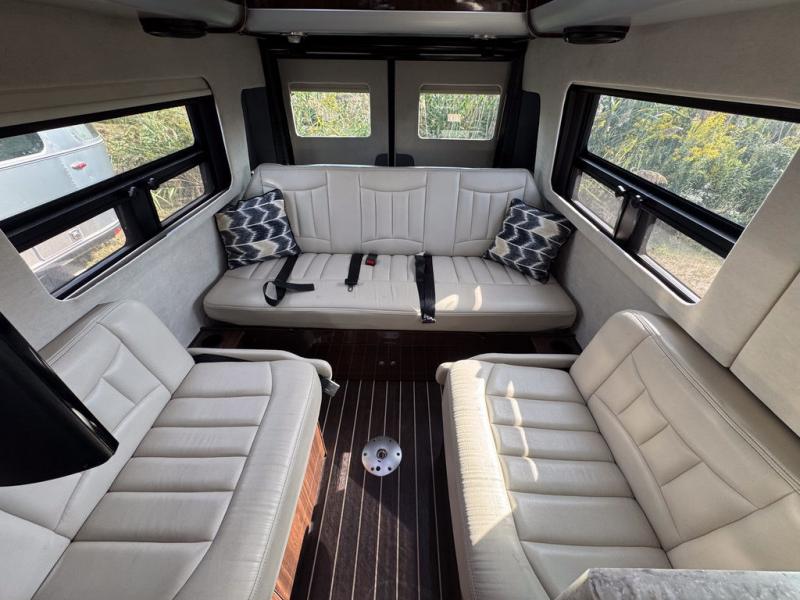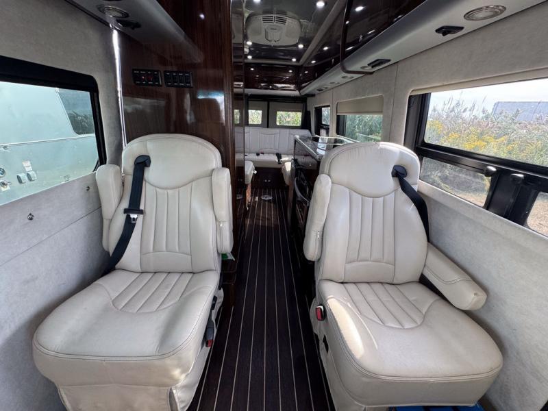 This Interstate Lounge EXT Class B diesel coach offers interior seating for 9 individuals and sleeping accommodations for two.