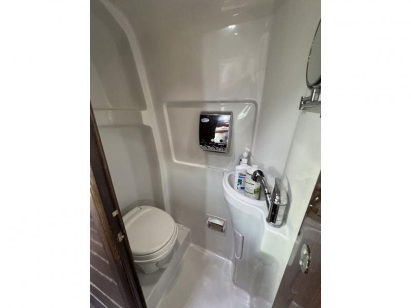 As you move toward the rear notice a convenient wet bath on your left including a toilet, small sink and shower.