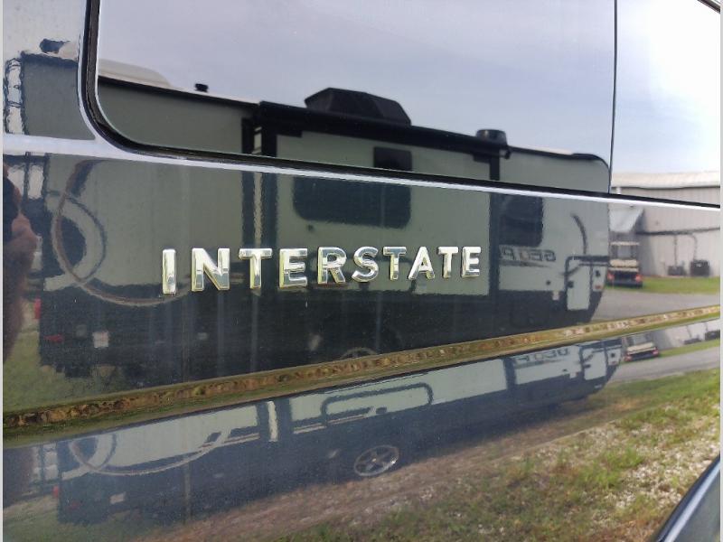This Interstate Lounge EXT Class B diesel coach offers interior seating for 9 individuals and sleeping accommodations for two.