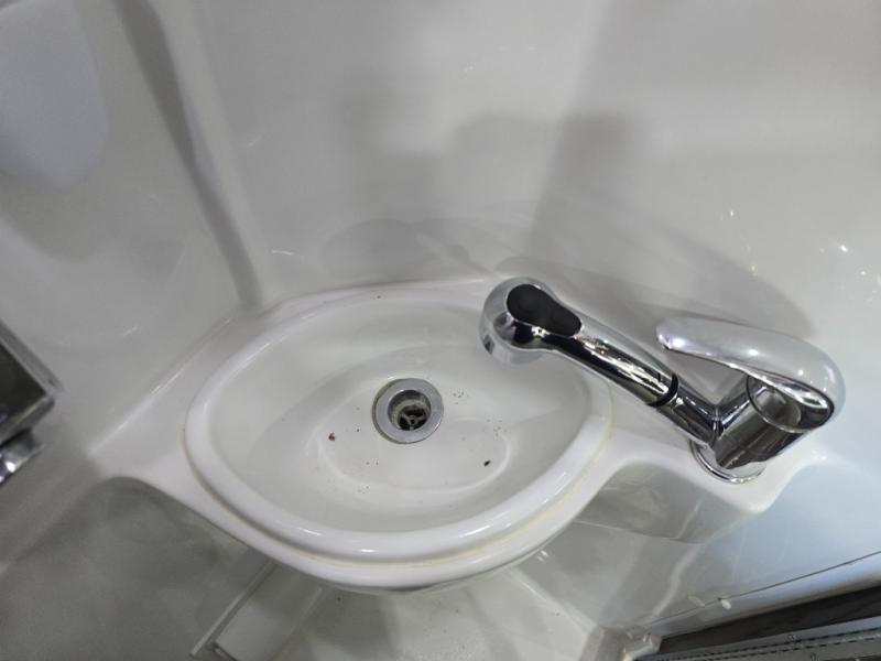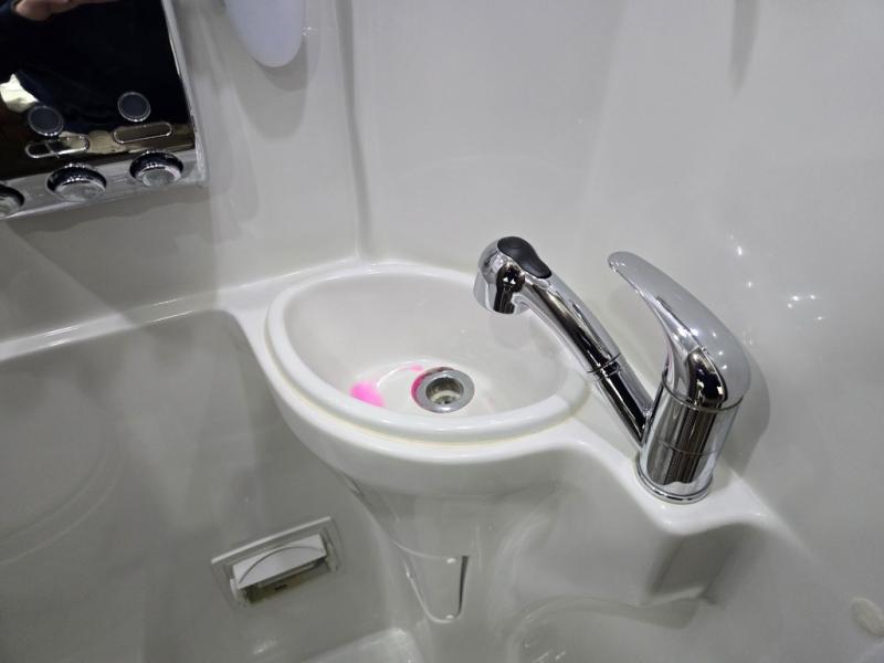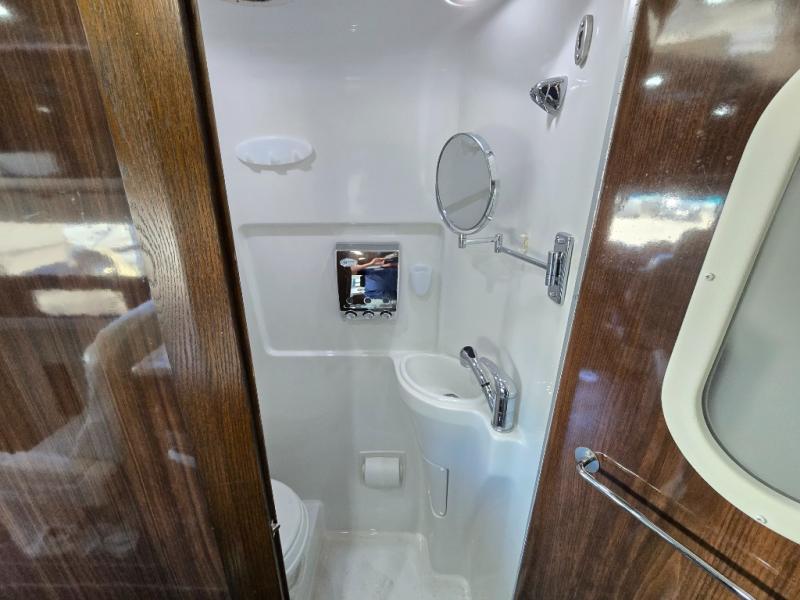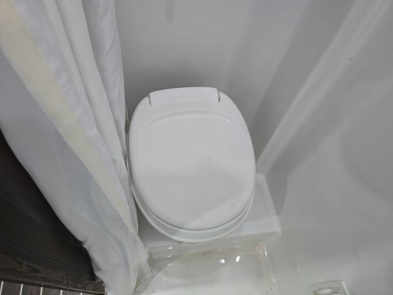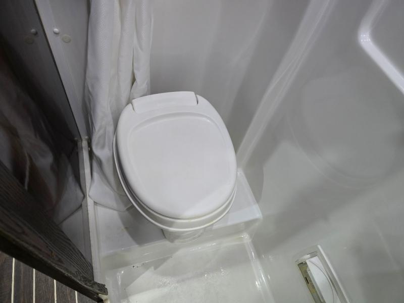 As you move toward the rear notice a convenient wet bath on your left including a toilet, small sink and shower.