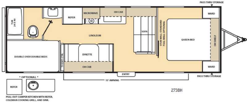 This Coachmen Catalina bunkhouse travel trailer model 273BH features a rear bath layout along with double size bunks, and more to enjoy!