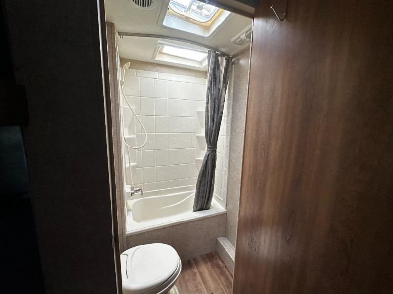 The rear left corner features a double size bunk beds for the kids or extra guests. The right rear offers a private tub and toilet, plus a separate sink just outside the bath door, and so much more!