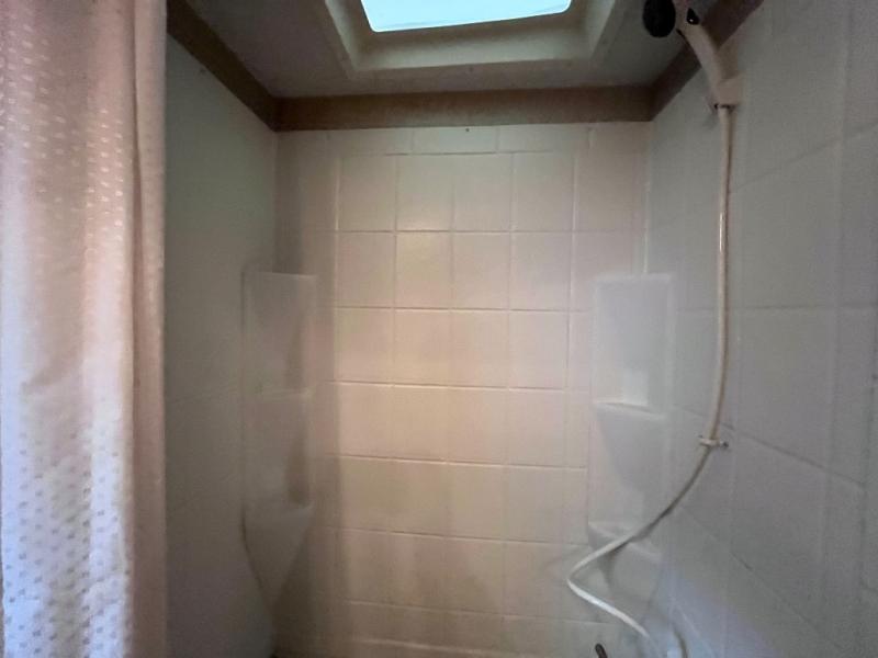 In the rear left corner there is a private bath with its own separate entrance making it very convenient when you need access from outside. There is a full tub, toilet, and sink with medicine cabinet overhead.