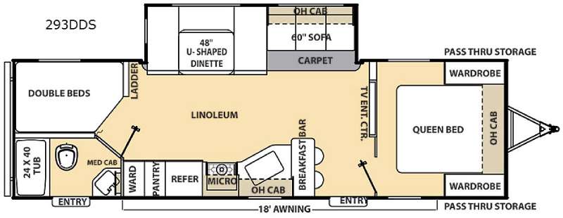 The right rear corner offers sleeping for four with double bed bunks including a ladder to make getting to the top bunk easy, plus so much more!