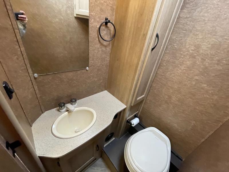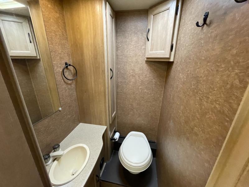 The full bathroom includes a shower, vanity, and toilet, allowing you to enjoy the convenience of a complete onboard setup no matter where you travel. With thoughtful storage throughout the coach, staying organized on the road is easy and stress-free.
