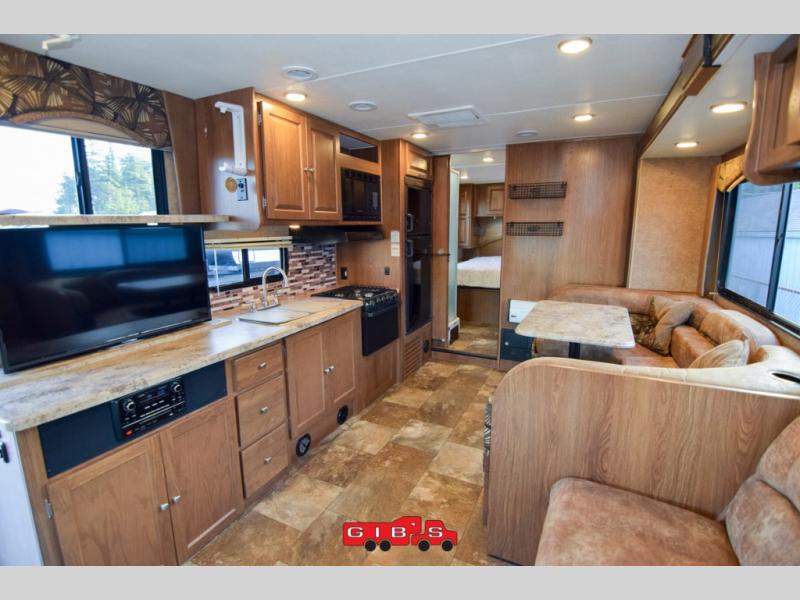 Choose optional recliners in place of the sofa in the slide out and you will also enjoy the added sleeping space with the 57" x 95" bunk above the cab area, plus so much more!