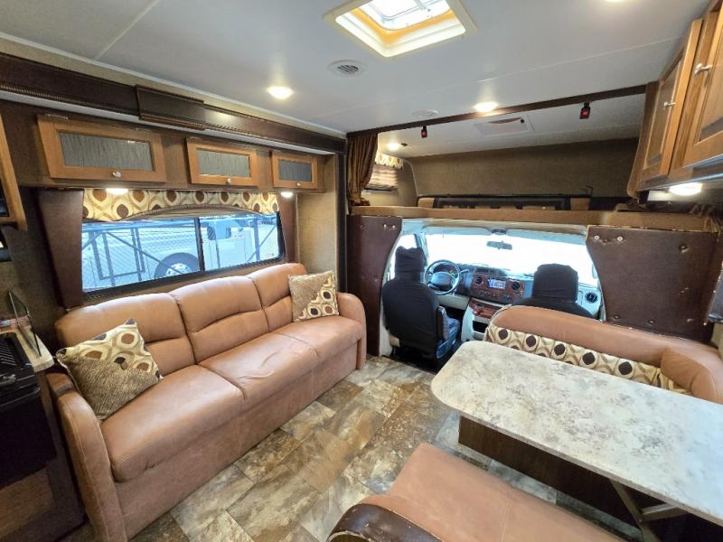 The perfect home on wheels for a larger family. This Leprechaun class C motor home features dual slides, a set of bunks for the kids, and everything you could need while spending time on the road.
