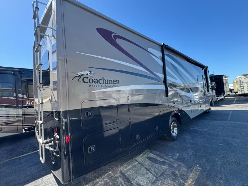 This Coachmen Mirada class A gas motor home 35KB features double slides, a king size bed, and all the amenities you need to enjoy any road trip!