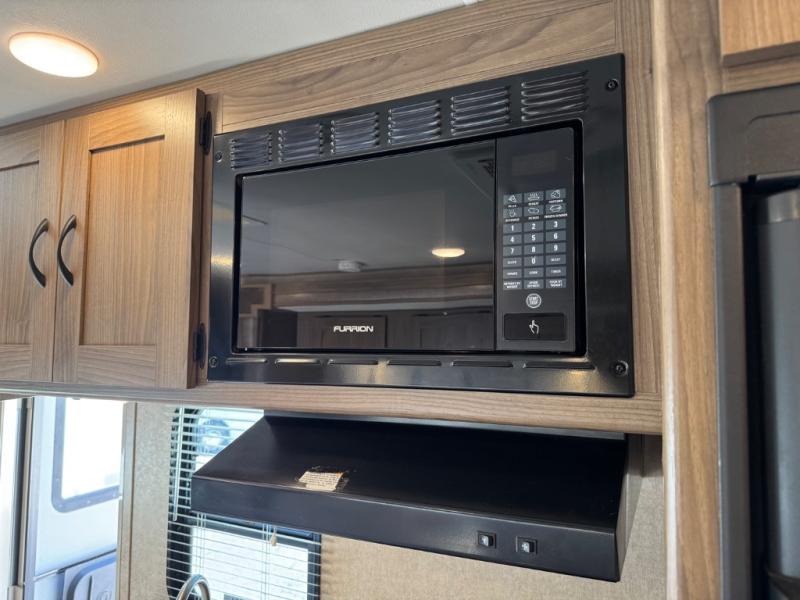 This Prism also features a 48" x 91" bunk above the cab area for additional sleeping space, or you can choose the entertainment center instead with storage cabinets also.