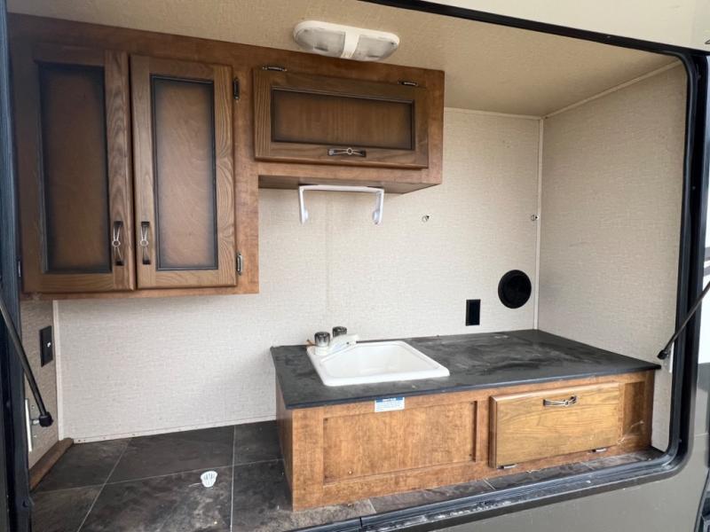 Outside there is an exterior kitchen with a refrigerator, and sink. You can even choose an optional bumper mount grill, plus more!