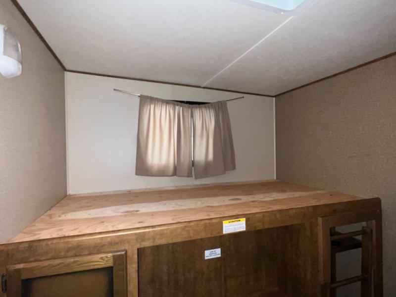 The rear bunk house has a slide with a jack-knife sofa on the bottom and a flip-up bunk above. You will also find a wardrobe and an additional bunk.
