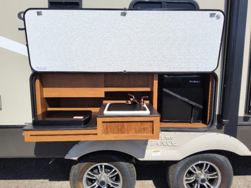 The Sunset Trail Reserve ST32RL travel trailer by CrossRoads RV offers triple slides and a rear living area.