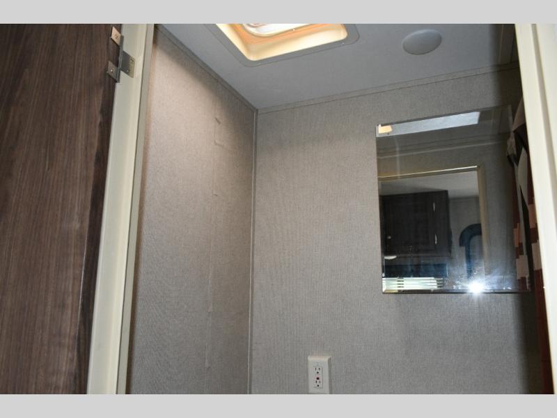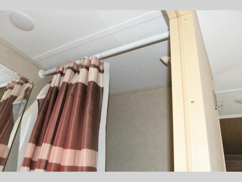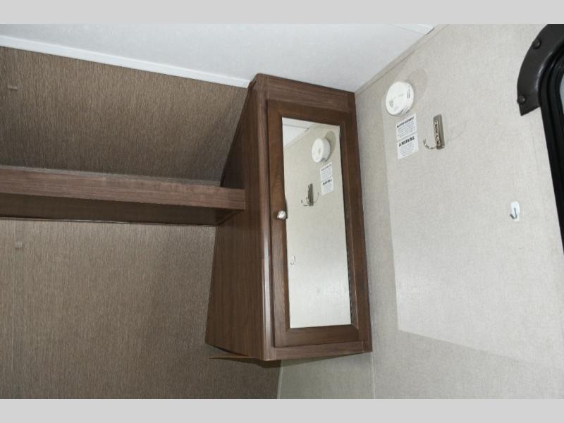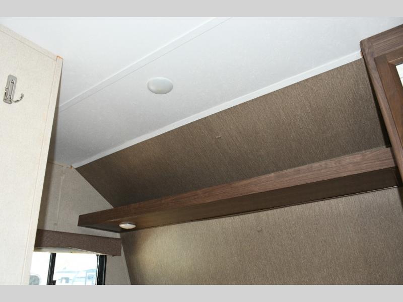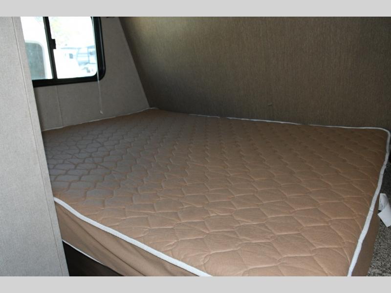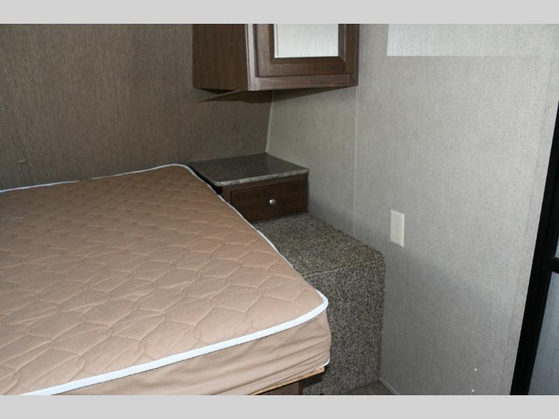 Queen Bed – Spacious front sleeping area with nightstand and shirt closet