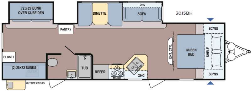 Does a semi-private rear bunkhouse, sleeping space for 8, and an outside kitchen plus dual entry into the trailer trailer sound like a dream home on wheels? If so, take a look at the dual slide Coleman Light 3015BH by Dutchmen RV today!