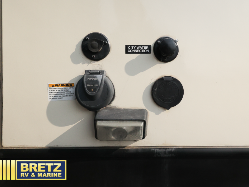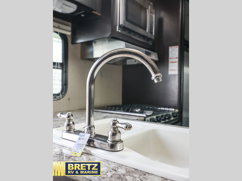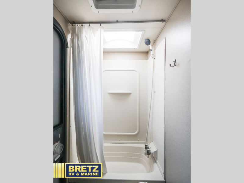 Step inside the rear most door and enjoy a bathroom featuring a tub/shower, toilet and sink. The outside entry door makes it much easier to access when spending time outdoors so you don't have to run all through the unit when you need to go.